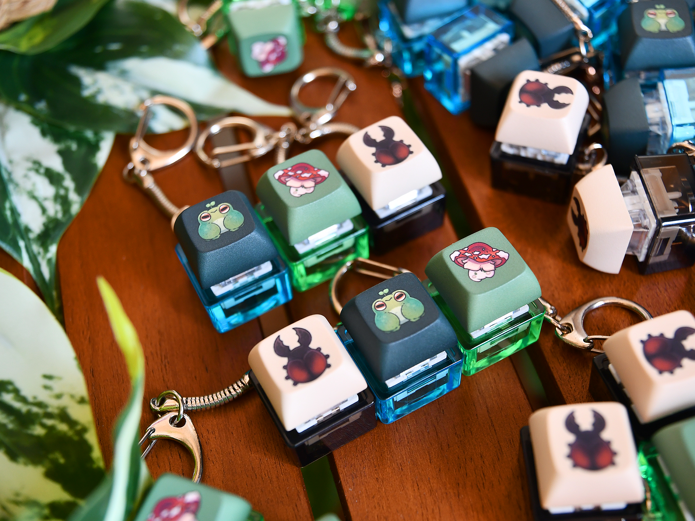 Clicky Keycap Keyboard Fidget Keychain ◦ Kawaii Frog Keychain ◦ Cute Mushroom Keychain ◦ Cute Beetle Insect Keychain